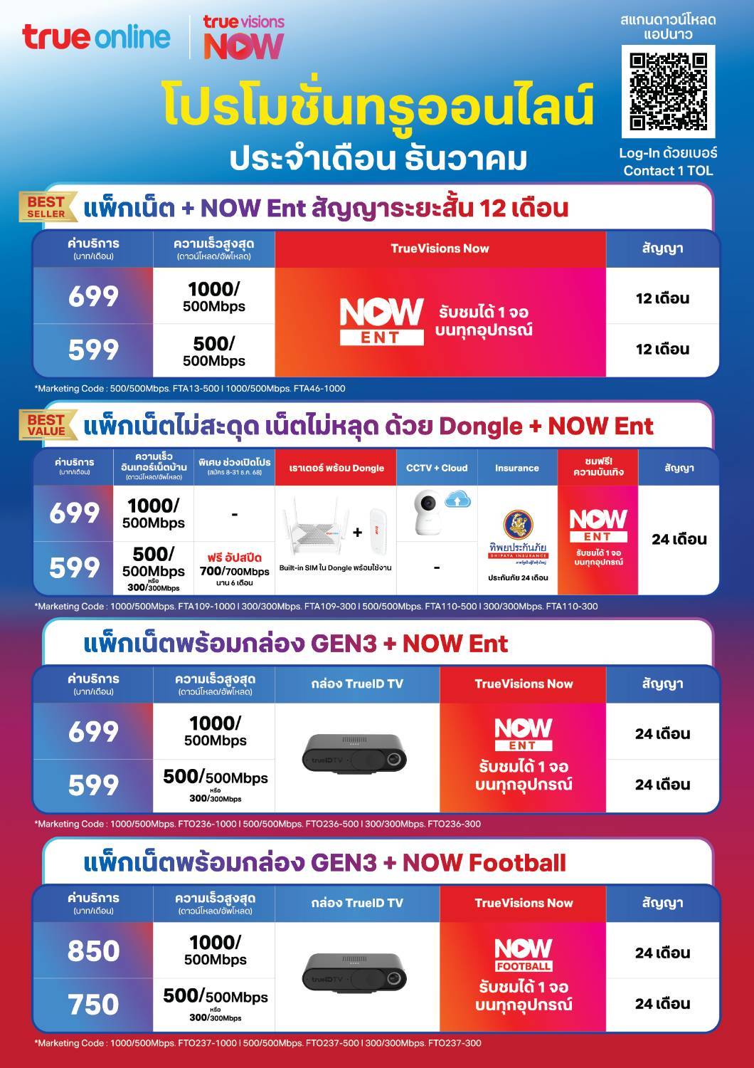 เน็ตบ้านทรู ติดเน็ตบ้าน วันนี้ ลูกค้า TrueMove H แบบรายเดือน/ดีแทค รับสิทธิ์ส่วนลดตามโปรที่กำหนด สมัครใหม่ true online ในราคาพิเศษ ตามโปรโมชั่นที่กำหนด * สมัครได้ที่นี่ Click
